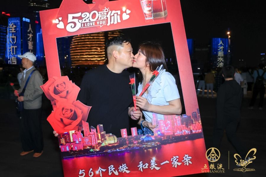 5月20日,五粮液集团公司联合共青团浙江省委、浙江省青年联合会、杭州市委宣传部等主办的第23届中国国际西湖情五粮液玫瑰婚典大型灯光秀在浙江杭州上演。作为中国白酒文化承继者,五粮液以酒为媒,弘扬中国“和美”文化,持续向全社会传递“和美”正能量。
