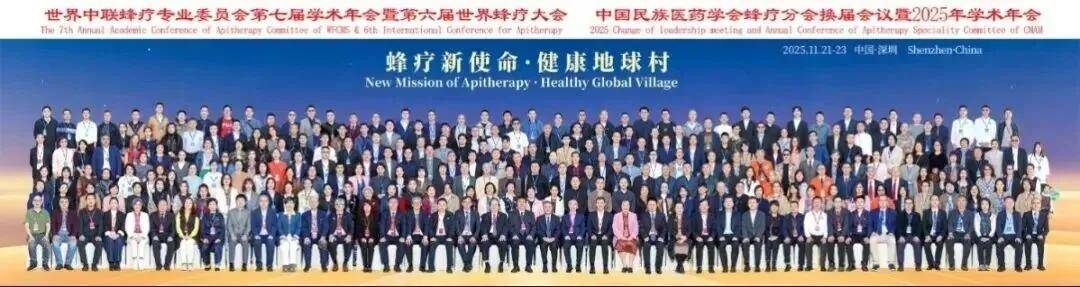 2025年11月21至23日中国民族医药学会蜂疗分会换届会议暨2025年学术年会、世界中联蜂疗专业委员会第七届学术年会暨第六届世界蜂疗大会、中国蜂产品协会蜂产品保健专委会创新产品展览在深圳隆重开幕。