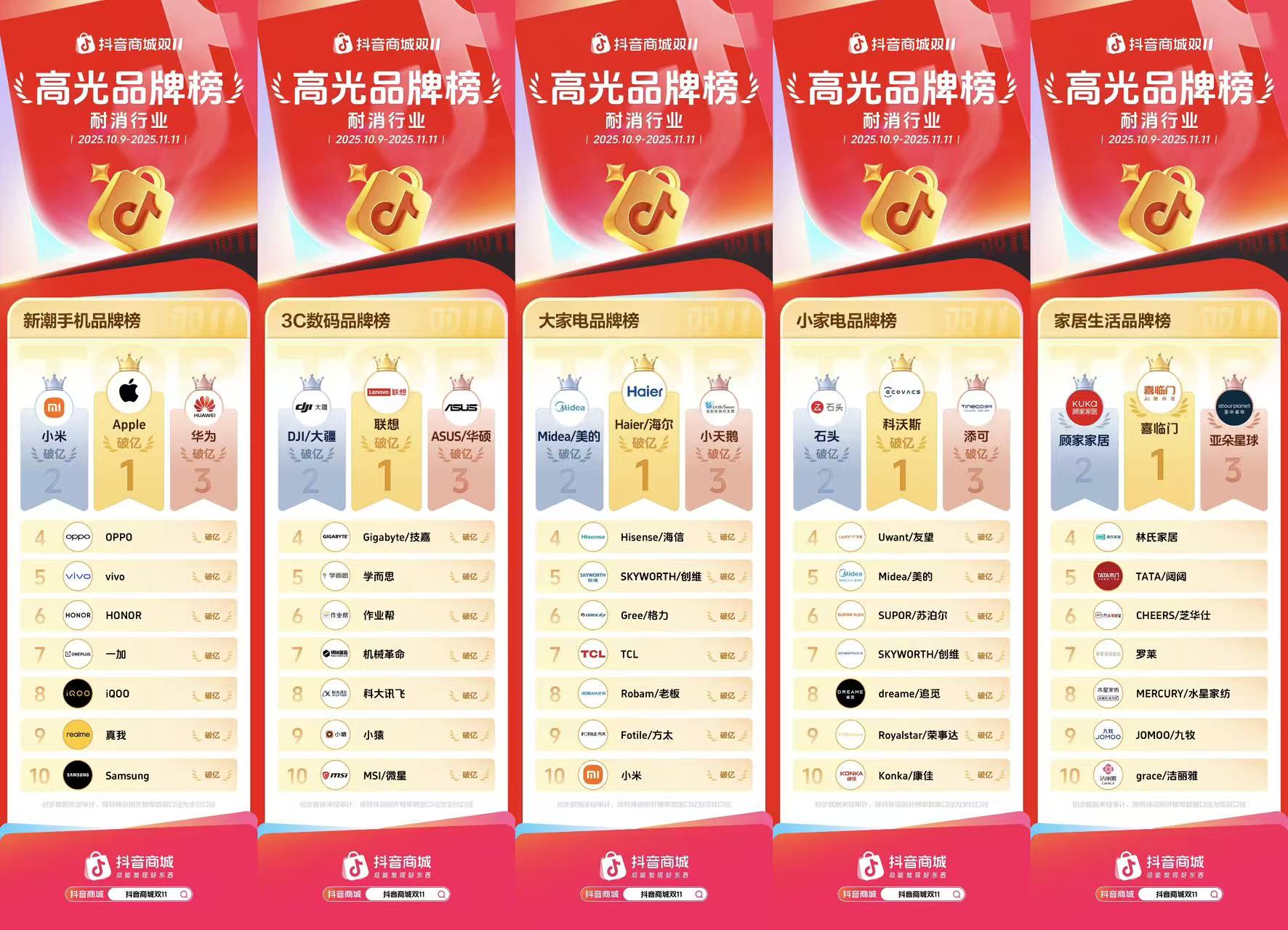 从百年积淀的国货老字号,到锐意崛起的新锐品牌,再到持续热卖的国际大牌;从个性化需求不断涌现的服饰行业,到“美力崛起”的美容护肤赛道,再到“国补”政策催化下数码、家电、家居等耐消品的长尾爆发,不同品牌都在抖音电商双11的消费暖流中实现快速增长。