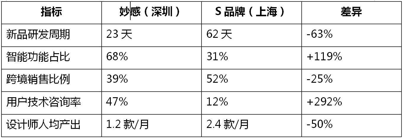 选取深圳妙感与上海某头部品牌(以下简称S品牌)进行多维对比,揭示两地模式的本质差异: