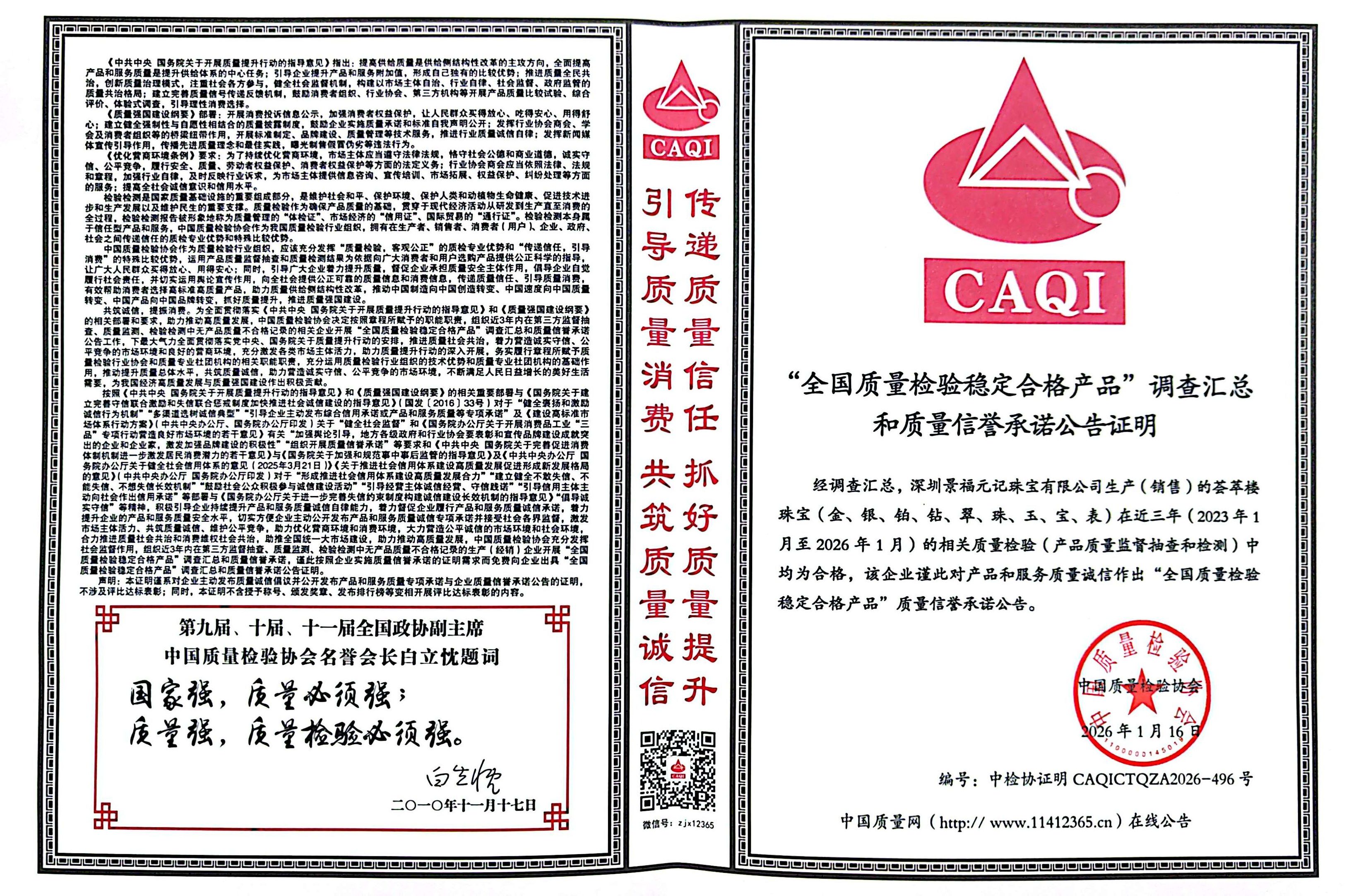 在刚刚落幕的2026年“3·15”国际消费者权益日活动中,荟萃楼珠宝再度斩获“全国质量检验稳定合格产品”与“全国产品和服务质量诚信承诺企业”两项权威荣誉。这份来自中国质量检验协会、行业同仁及广大消费者的认可,为其近年来的战略转型写下了最佳注脚。