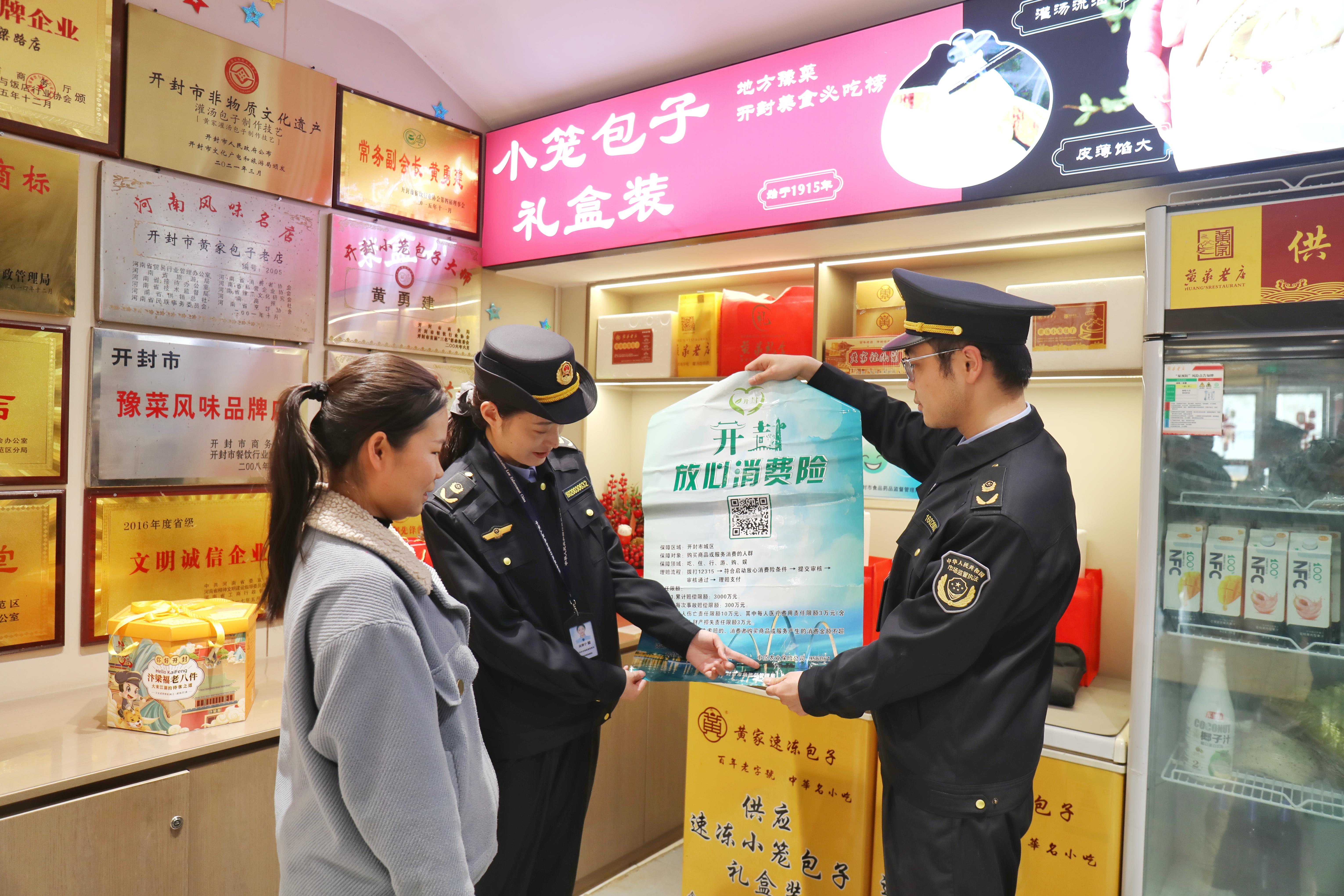 清明节将至。近日,河南省开封市市场监管局执法人员走进商户,开展放心消费险宣传活动,护航祭扫、踏青、餐饮等全场景消费,让游客消费更放心、更省心。执法人员向商家讲解放心消费险政策要点,倡导明码标价、诚信经营,提醒消费者遇纠纷可通过放心消费险快速维权。图为执法人员在给消费者讲解放心消费险政策。